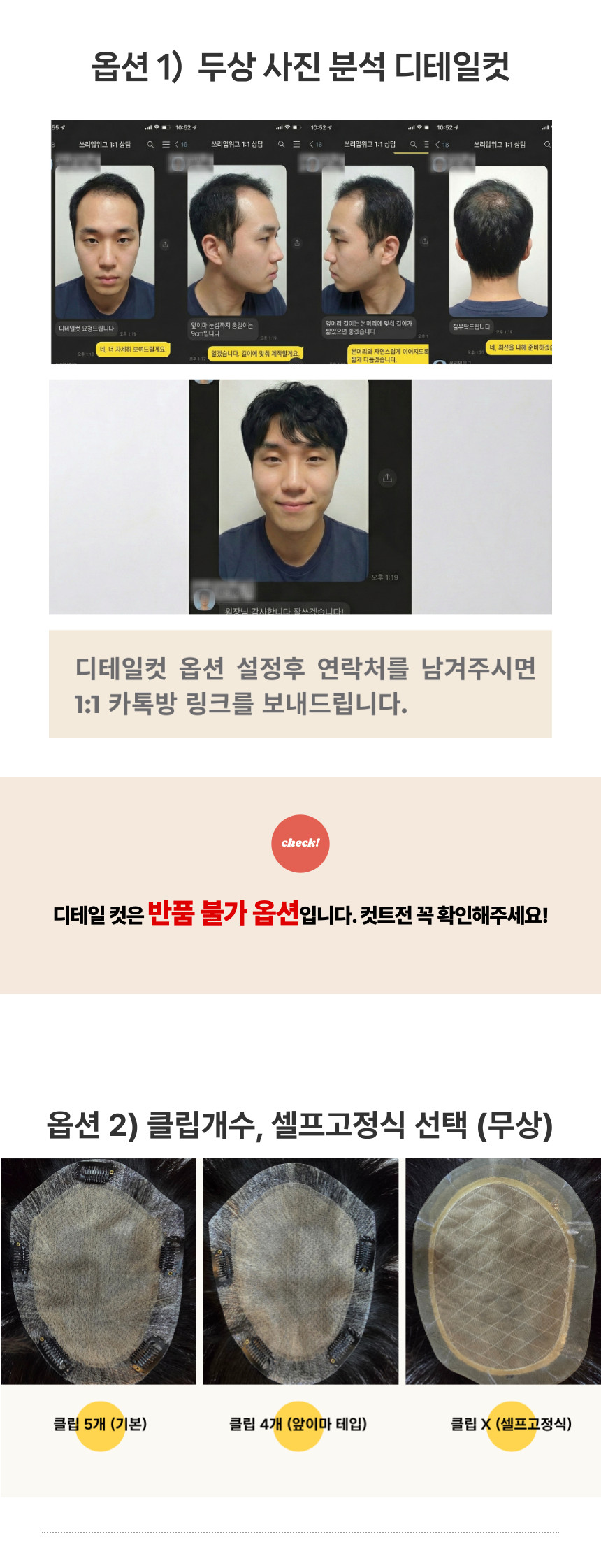 단, 디테일컷 신청과 가발 특성상 착용 후·커트 후·사용 흔적 발생 시 교환/반품 불가.